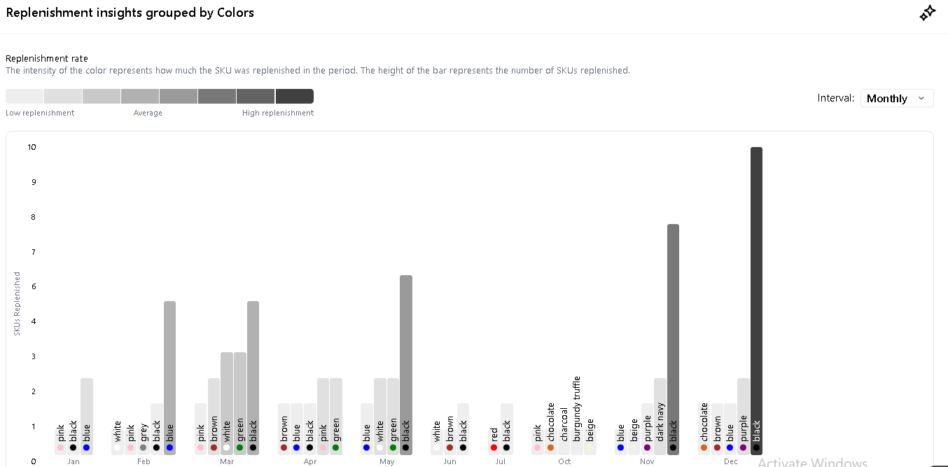 The data reveals which categories are being restocked most often, along with the colour palettes that dominate these recurring drops. Together, these patterns offer a window into customer preferences, fast-moving segments, and the core styles that continue to perform for Yours Clothing.