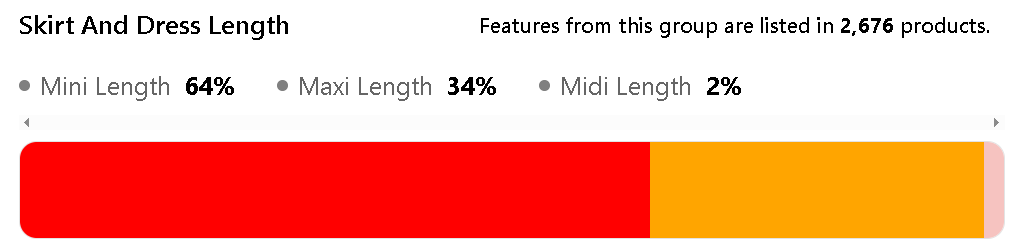 The top features within this category are Mani Length (64%), Maxi Length (34%), Midi Length (2%).
