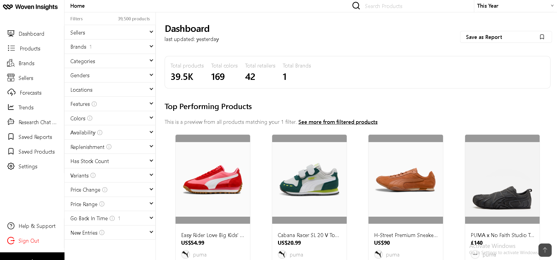 Puma’s 2025 lifestyle collection shows a clear commitment to blending functionality with everyday style. To understand which design elements are driving demand, we analysed more than 39 thousand products across the brand’s assortment using Woveninsights’ Market Insights module.
