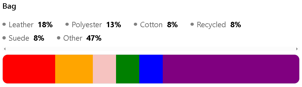 The top features within this category are Leather (18%), Polyester (13%), Cotton (8%), Recycled (8%).