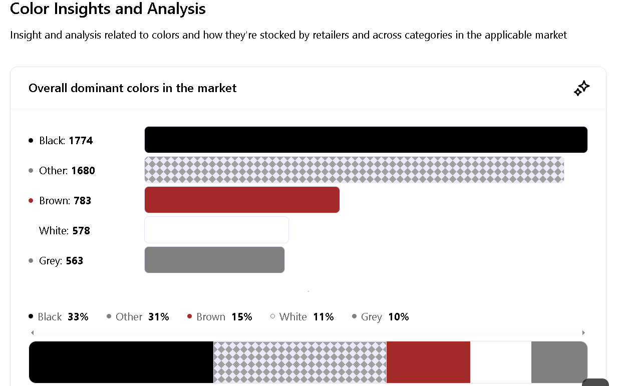 According to WovenInsights' Market Insights Module, the overall leading colors are: