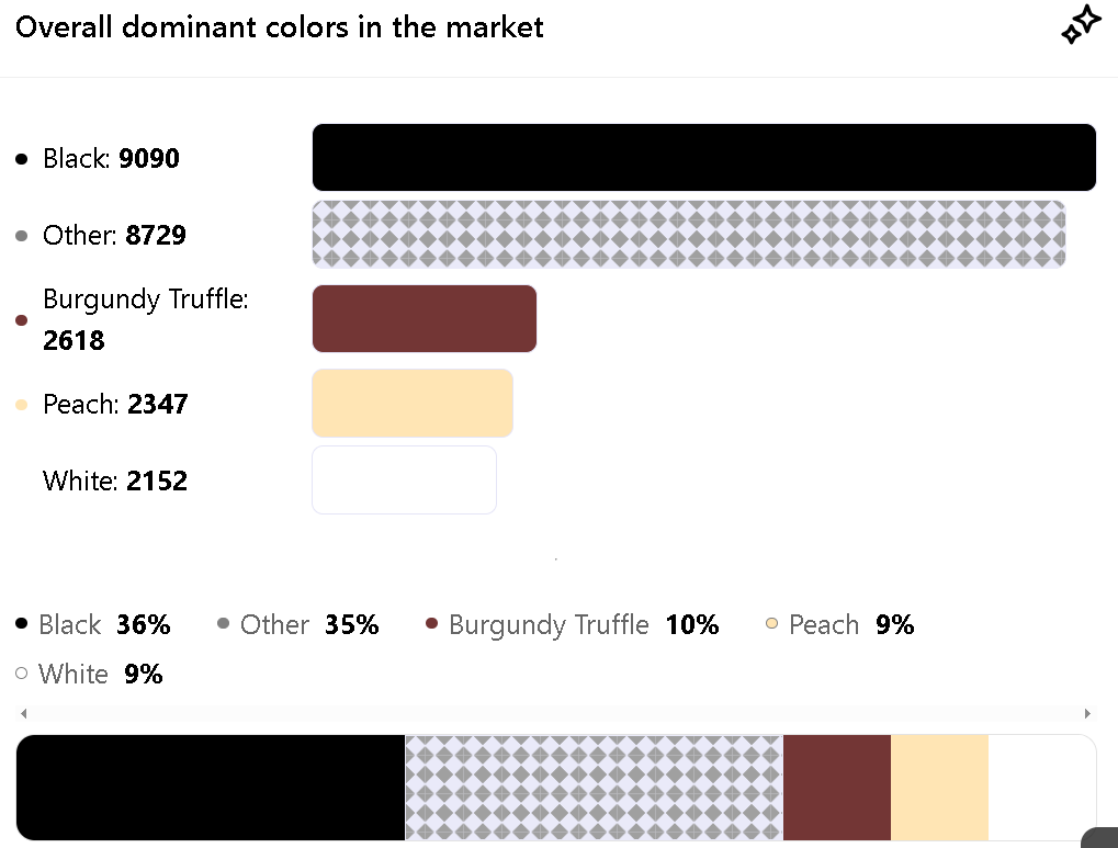 By analysing more than 13,000 products through Woven Insights’ Market Insights module, the data makes one thing clear: Cuccoo is curating a palette that aligns closely with what shoppers consistently gravitate toward. These colour trends not only shape the brand’s current assortment but also offer valuable direction for future product planning, design choices, and replenishment strategies.