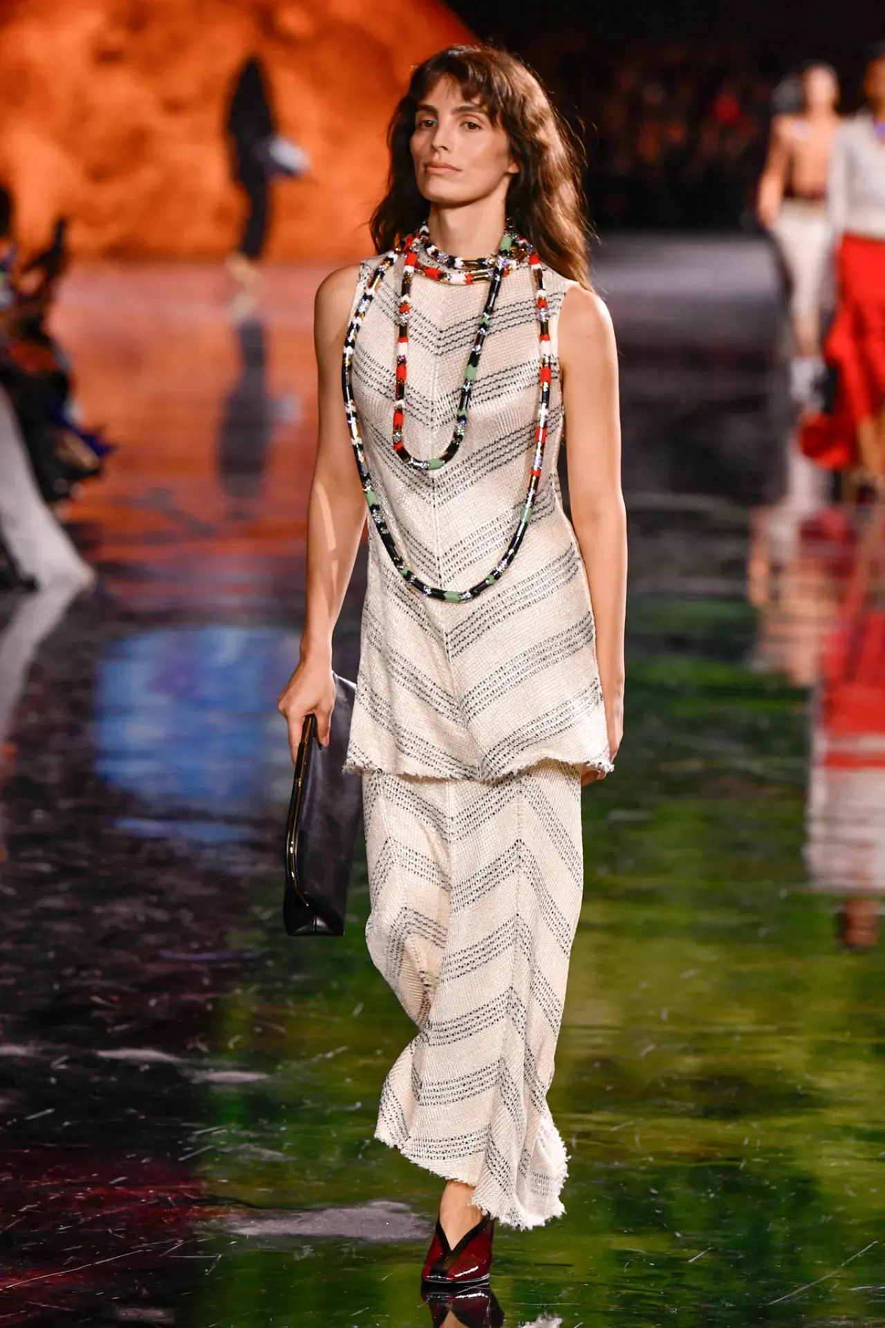 Beyond the neutrals, designers explored gentle hues of orange, pink, and red, adding freshness without overwhelming the eye. Together, these colors set a tone that felt balanced elegant but not stiff, expressive yet wearable.