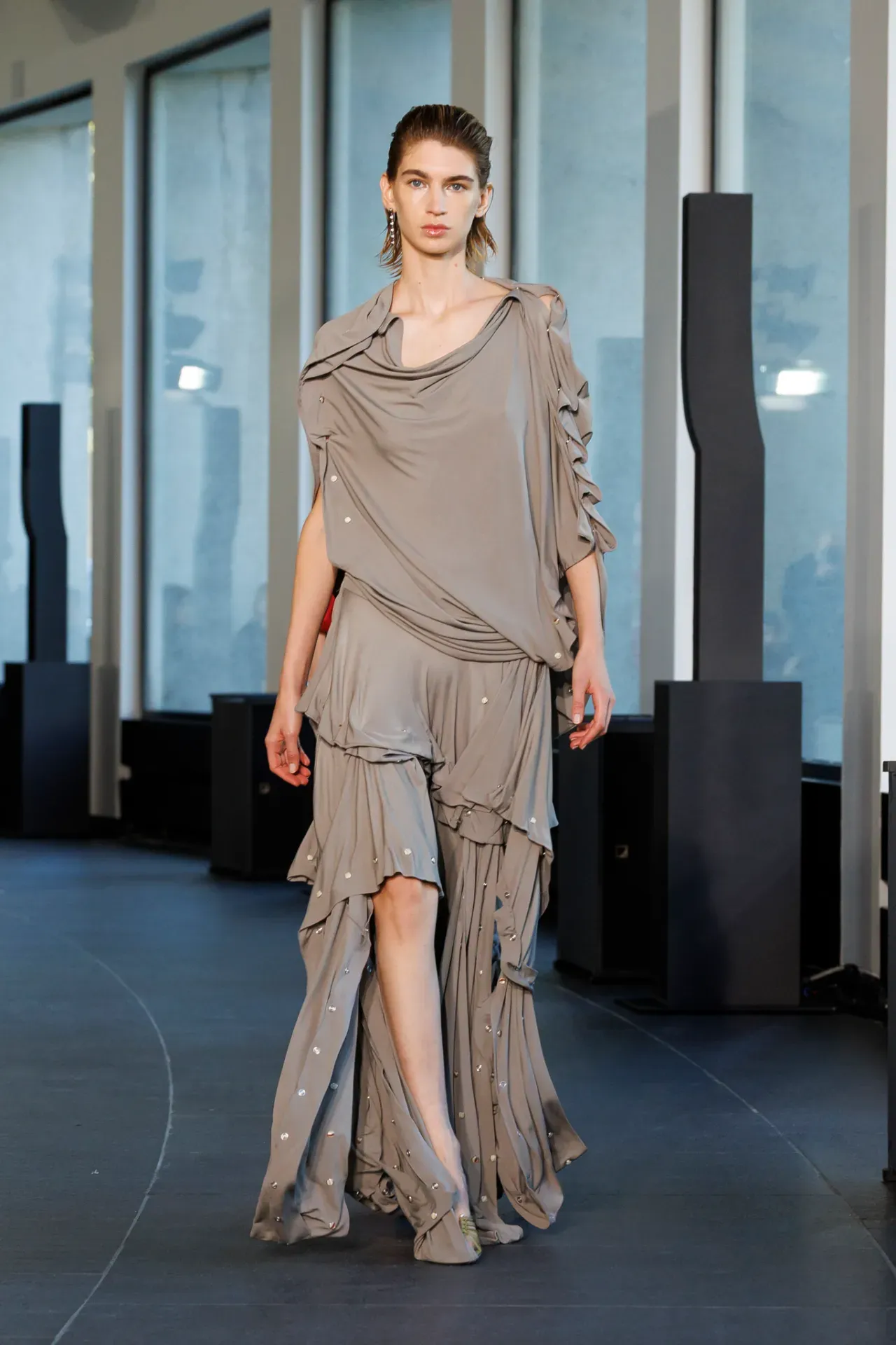 Dresses followed the same direction, fluid in shape, focusing on movement and fabric quality rather than tight, body-conscious cuts. Layering also played a role, with light outerwear and shirts styled loosely to create depth and comfort in everyday wear.