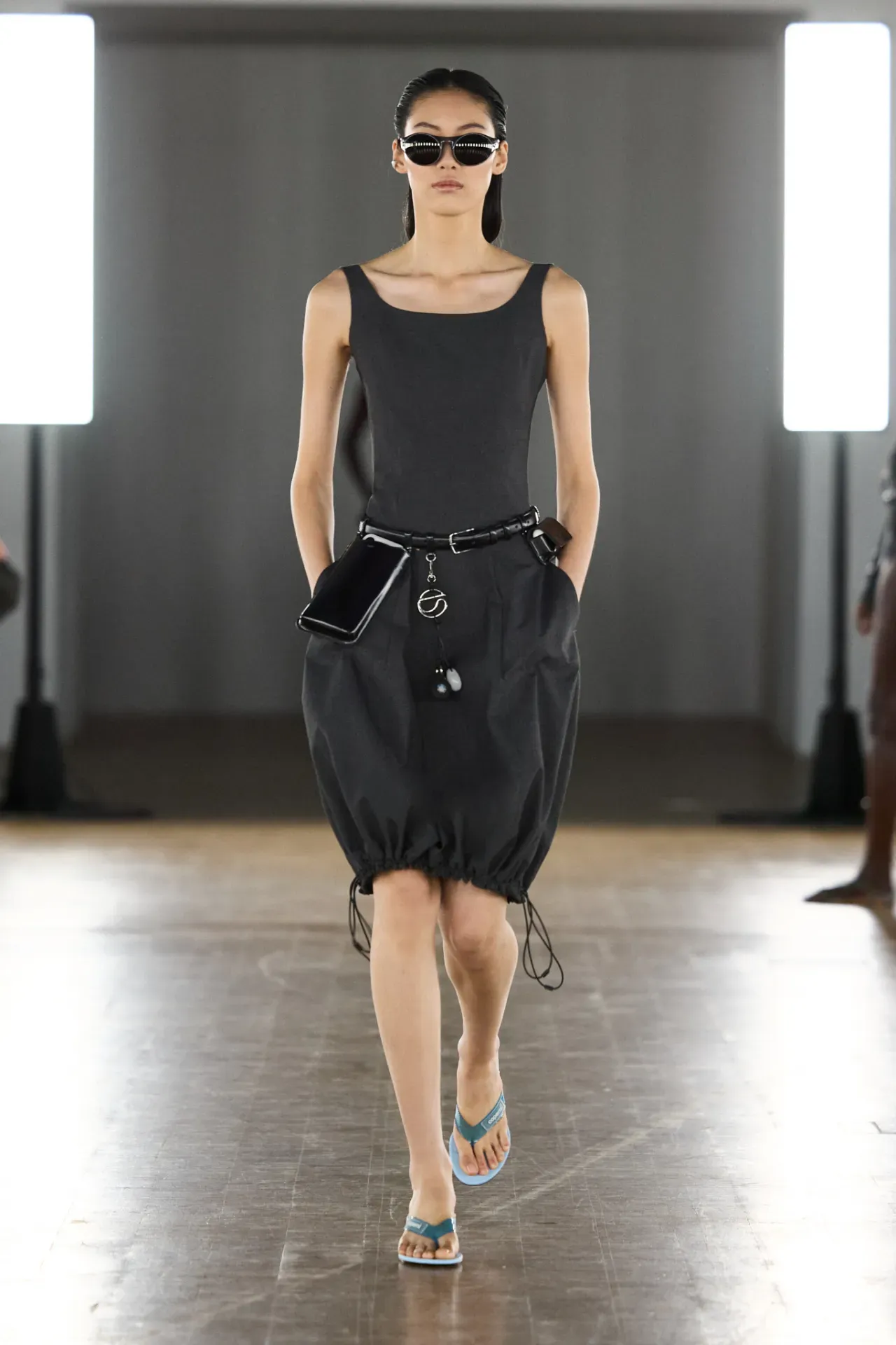 Accessories brought character and practicality to the runway this season. Ujoh featured hats, adding a minimalist yet functional edge. Coperni introduced waist purses, sunglasses, and flip-flops, blending utility with a modern street sensibility. Miu Miu focused on bags and also featured sunglasses, continuing its balance of youthful and polished styling. Chanel complemented its looks with neckpieces, adding subtle refinement to its signature elegance.